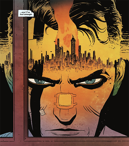 La fiction est à son meilleure quand elle s’attarde sur Batman, sa fatigue, ses faiblesses et, une fois de plus, une forme de fragilité humaine. Rappelons que le justicier opère seul à ce stade (les Dark Patterns se déroulant peu après ses débuts de croisade), avec uniquement Alfred et Gordon en alliés. Paréidolie (le fait de voir des visages ou figures familières dans des formes diverses) s’épanche sur un quartier de Gotham laissé à l’abandon, aussi bien par le GCPD que la municipalité et même par le super-héros lui-même. De quoi montrer (un peu comme dans le deuxième tome) des citoyens démunis et sans espoir. Quelle solution face à cela ? L’auteur Dan Watters n’y répond pas vraiment (peut-être dans le quatrième et dernier opus ?).