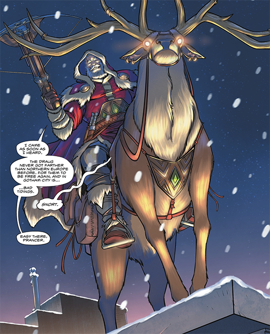 Le père Noël débarque à Gotham City, et son tempérament joyeux a laissé place à une sombre détermination : il est là pour enquêter sur un crime brutal qui a secoué la ville dans les jours précédant Noël. Pour tenter de tirer l’affaire au clair, le Père Noël devra s’unir à Batman et aux héros de l’Univers DC pour espérer stopper l’effroyable Krampus et son armée de monstres de fondre sur la ville… sans quoi les fêtes de Noël prendront une tournure dramatique !