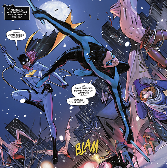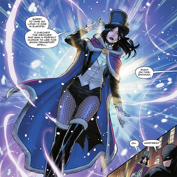Côté dessin, heureusement l’ensemble est de bonne facture, parfois appréciable – quand la fiction convoque la magie par exemple (Zatanna est présente par exemple) ou montre même quelques scènes sanglantes. C’était risqué car chaque chapitre est assuré par un artiste différent ! Ainsi on retrouve Michele Bandini, Trevor Hairsine, Danny Kim et Stephen Segovia. C’est peut-être le coloriste Alex Sinclair (prolifique chez DC) qui permet au titre d’avoir sa jolie palette chromatique appréciable.