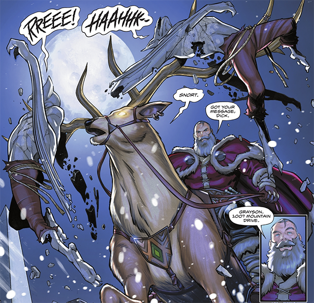 La fiction part dans tous les sens, plein de super-héros apparaissent le temps de quelques cases ou planches, ça manque cruellement de fluidité narrative – un comble vu la cible – et même d’une certaine originalité (c’est pas tous les jours qu’on a Santa Claus en guest pourtant, dommage !). Silent Knight se lit donc plutôt péniblement, on a du mal à comprendre l’intrigue et les actes de certains protagonistes. Même si ça se termine vite, on l’oublie aussitôt, sans avoir réellement pris de plaisir, dommage… Le scénariste Jeff Parker, davantage habitué de l’écurie Marvel, peine à apporter un côté intelligible et agréable à sa fiction.