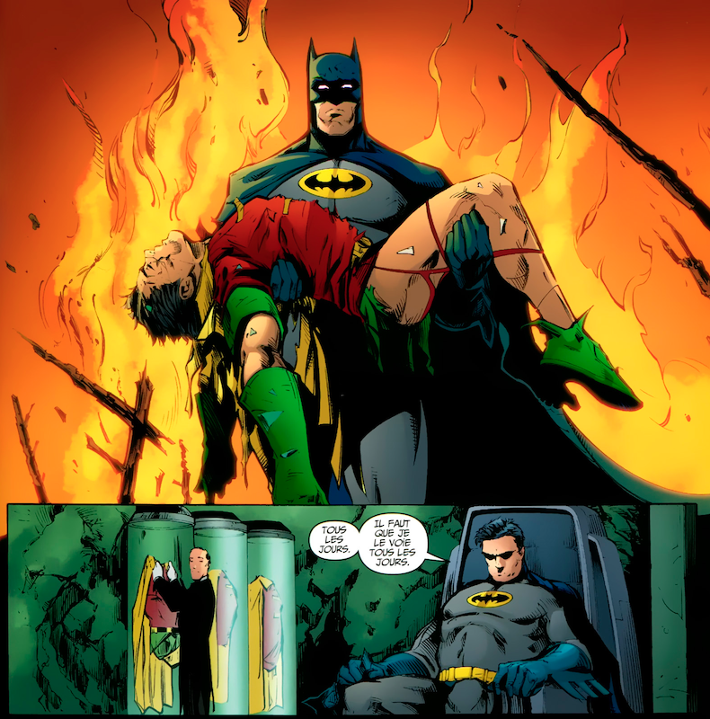 Aparté : lors de la publication du tome simple en 2012, Urban Comics contextualisait en avant-propos ces sujets et donnait les titres en VO (Prodigal en l’occurrence, mais aussi Battle for the Cow qui servait de transition pour Dick en parallèle du run de Morrison – prochainement chroniqué). Pour la réédition de 2018 en intégrale, Urban s’est contenté du strict minimum côté travail éditorial car le texte est identique à celui de la précédente édition. C’est dommage car entretemps l’éditeur a bien publié Knightfall et Prodigal ! Il suffisait donc de citer leurs titres traduits (et éventuellement les collections dont ils font partie). Ce n’est pas très grave en soi mais pourrait mal accompagner un lecteur novice.