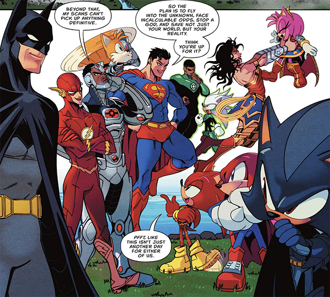 Mark Waid signe un titre dense mais accessible et fluide, épaulé par tous les scénaristes des séries habituelles (Chip Zdarsky pour Batman, Joshua Williamson pour Superman, Tom King pour Wonder Woman – qui écrira comme d’habitude des dialogues remplis de mots vulgaires #fatigue – et ainsi de suite). On aurait aimé un zoom sur les Flash, Aquaman et Cyborg, tous relégués à de la figuration et, dans une moindre mesure, sur différents ennemis – ceux de Batman en tête. Il y a donc un sentiment d’incomplet mais qui ne gâche pas l’ensemble. Pour ceux qui ont suivi Failsafe dans la série Dark City, Reine Brainiac dans Dawn of Superman et, entre autres, les aventures de Green Arrow (cf. plus haut), l’impression d’un regroupement majeur entre tous ces titres est particulièrement jouissif. Le fidèle lecteur est récompensé, sans pour autant avoir l’impression d’une sorte d’artificialité entre ses connexions ou un appui forcé.